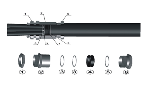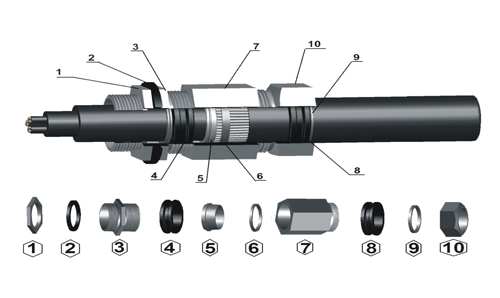 B.After removing over sheath of the cable, Insert Part No.6 over the exposed armour.